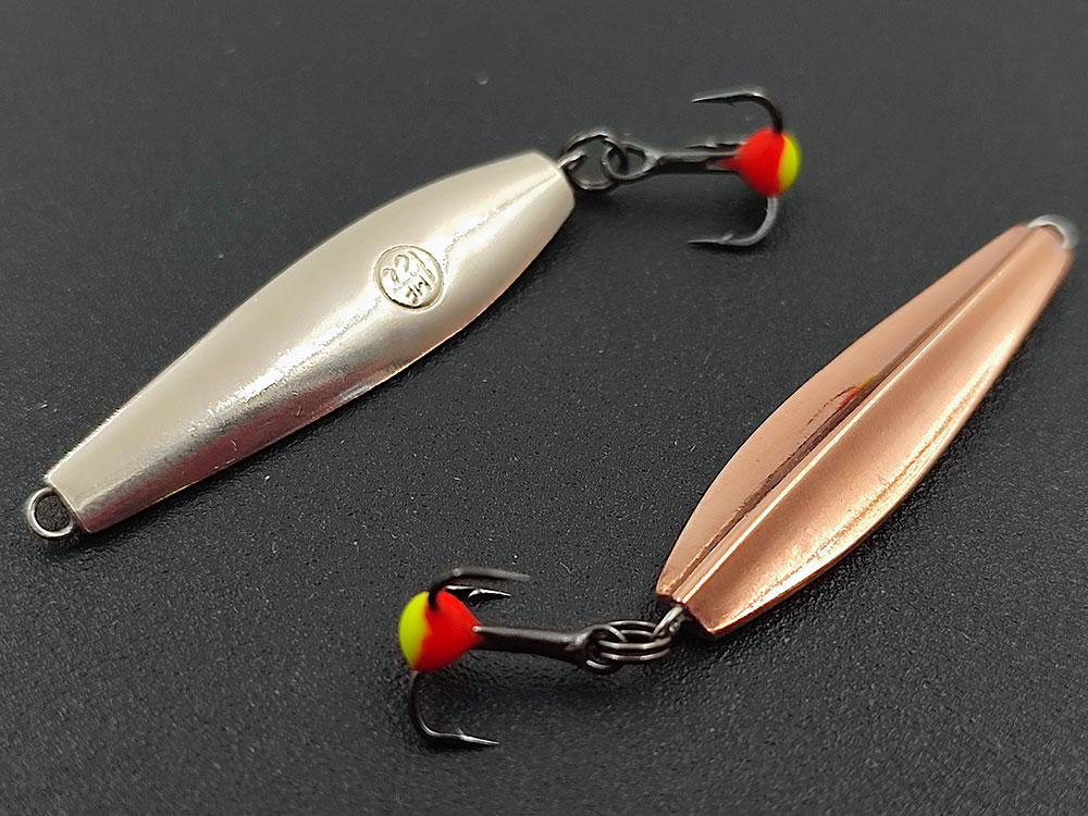Описание Блесна ККМ-2 – это продолжение линейки блесен ККМ (Креницы КилоМетры – популярное место ловли на Ладожском озере). Модель с индексом «2» мельче своего прародителя, однако может использоваться на тех же глубинах и по той же рыбе. Маленькая, компактная и относительно тяжеленькая. Длина блесны 37мм, а ее масса составляет 3.8г. Варианты с подвесным тройником с каплей, а так же вариант впайки. Впайка с двумя крючками. Крючки небольшие, максимально острые – это позволяет ловить не только крупного окуня, но и относительно мелкого. Так же впайка оснащена подвесной бусиной бордового цвета.