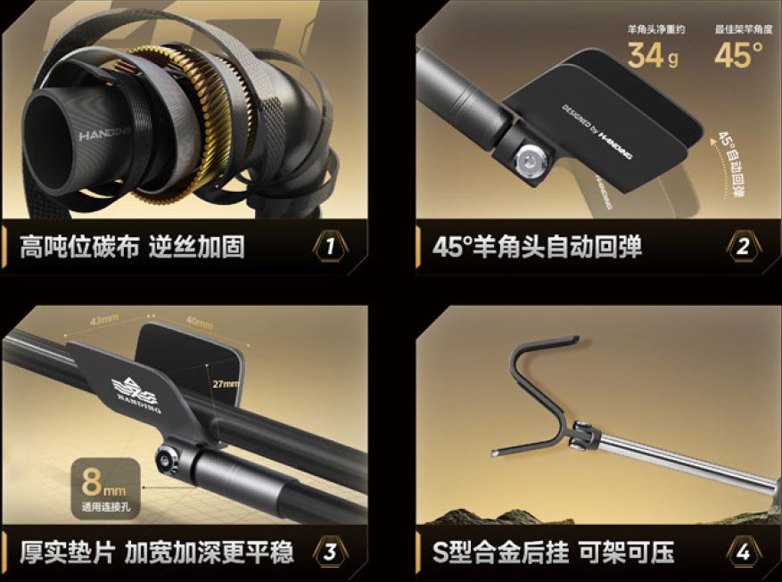 Описание Стойки для удочек Handing – это короткие легкие стойки в комплекте с комлевой подставкой, которая позволяет использовать небольшую длину стойки, даже если удилище перевешивает. Одноколенная стойка 80см и телескопическая стойка 80-140см. Стильный черный дизайн, удобная «бабочка» с большой площадью опоры (не травмирует удилище). Опорный комлевой держатель S-типа позволяет размещать удочку и сверху и снизу.